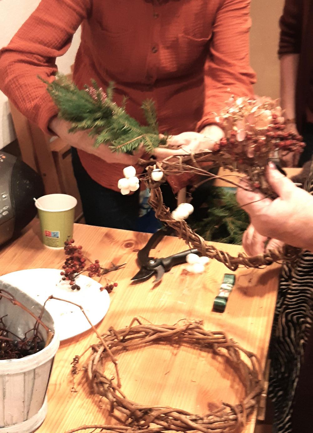 Linkki kuviin Kranssintekoa ekoateljeessa