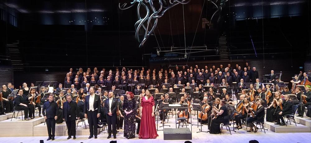 Musiikkitalon konserttisalissa Helsingin keskustassa juhlittiin 80-vuotiasta Helsinginkadun Filharmonikot -sinfoniaorkesteria 24.5.2025. Orkesterissa soittaa useita kymmeniä työväenopiston musiikin harrastajia.