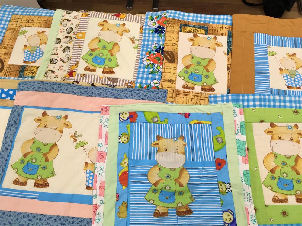 Saamme valtavasti lahjoituksina kankaita, joista kurssilaiset valmistavat erilaisilla tilkkutyötekniikoilla keskosille tarkoitettujen peittojen päälliset. Opistolaisyhdistyksen rahallisella tuella olemme voineet hankkia peittojen väliin tulevan pehmusteen, ompelulankoja sekä peittojen toisen puolen kankaan, flanellin.