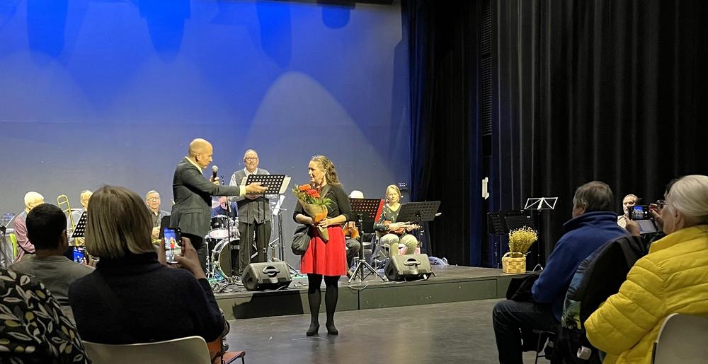 Yhdistyksen puheenjohtaja SimoHeiskanen kiittää Satu Luomajokea järjestelyistä!
