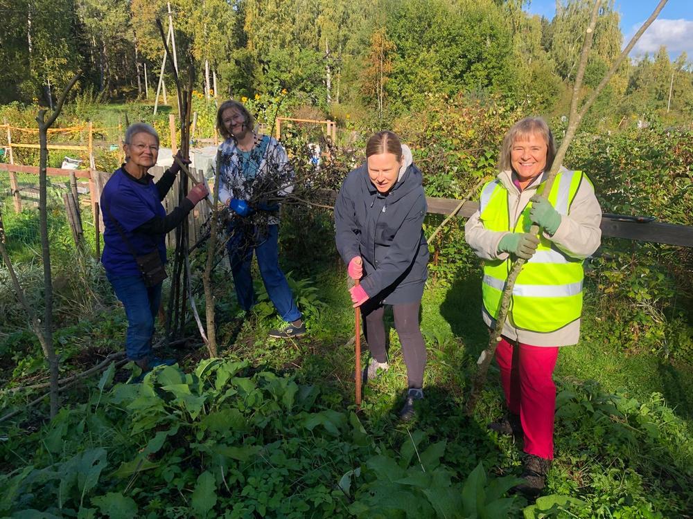 Talkoot 21.9.2024 Kiitos kaikille talkoisiin osallistuneille! Yhteistoimin saimme monta tärkeää asiaa hoidettua, mm. siltoja ja risuaidat eteläpäähän. Kaksi lavaa täyttyi romusta, joten palsta-alue siistiytyi kovasti. Hyvä me!